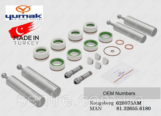 В асортименті турецького виробника можна знайти практично всі металеві елементи пневматичних підвісок: компресори (у зборі чи деталі), поршні, клапани, плити, осушувачі, насоси та інше. Також у каталогах Yumak можна знайти ремкомплекти компресорів, крани рівня поля для трейлерів та ущільнювачі. Застосування: вантажний транспорт європейських марок, автомобільні причепи. Завдяки жорсткому контролю якості та застосуванню сучасних технологій у виробництві запчастини Yumak обходяться в середньому на 30-40% дешевше за OEM. При цьому доступні за ціною аналоги практично не поступаються оригіналам в експлуатаційних властивостях та загальній якості виконання.